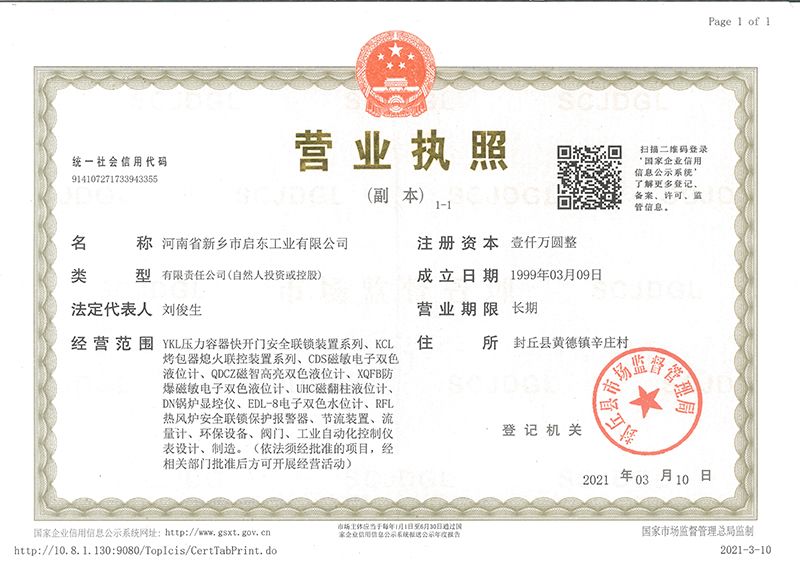 河南省新鄉(xiāng)市啟東工業(yè)有限公司始建于1987年,是專注研發(fā)、生產(chǎn)自動(dòng)化儀器儀表(主要與壓力容器、鍋爐等容器配套使用)的廠家。主要產(chǎn)品有液位計(jì)(磁敏雙色型、磁翻柱型等)系列、烤包器熄火聯(lián)控裝置系列、壓力容器快開門安全聯(lián)鎖保護(hù)裝置系列、鍋爐報(bào)警器系列。二十多年來,公司產(chǎn)品暢銷國(guó)內(nèi)并遠(yuǎn)銷俄羅斯、蒙古與東南亞,深得廣大用戶的信賴和好評(píng)。我們多年來致力于自動(dòng)化儀器儀表的研制生產(chǎn),公司現(xiàn)具有完善的生產(chǎn)、試驗(yàn)、檢測(cè)手段和設(shè)備。科技創(chuàng)新、誠(chéng)信服務(wù),是我們不變的經(jīng)營(yíng)理念,我們將以強(qiáng)有力的技術(shù)支持及售后竭誠(chéng)為客戶提供良好的服務(wù)。  2012年我公司成功研發(fā)了KCL系列烤包器熄火聯(lián)控裝置,并于2013年2月2日榮獲中華人民共和國(guó)國(guó)家知識(shí)產(chǎn)權(quán)局辦法的《實(shí)用新型**證書》<**號(hào):2021202257735>該產(chǎn)品廣泛應(yīng)用于唐鋼等大型鋼鐵企業(yè),為烤包器安全作業(yè)提供了有力的保障。  2002年我公司成功研發(fā)磁敏電子雙色液位計(jì)獨(dú)特的高亮度LED紅綠雙色顯示,獲得了專家的首肯和用戶的一致好評(píng)。在此基礎(chǔ)上我公司研發(fā)人員十年磨一劍,致力于XQFB-1防爆型磁敏雙色液位計(jì)的研發(fā),于2013年12月27日由國(guó)家防爆電器產(chǎn)品質(zhì)量監(jiān)督檢驗(yàn)中心檢驗(yàn)合格并頒發(fā)防爆合格證書<編號(hào):cnex19.0883>。該產(chǎn)品性能得到了充分的發(fā)揮,廣泛應(yīng)用于含有Ⅱ類A·B級(jí)T1-T4組可燃?xì)怏w或蒸汽與空氣混合形成的爆炸性混合物的0區(qū)、1區(qū)危險(xiǎn)場(chǎng)所。連接用戶DCS或PLC系統(tǒng)實(shí)現(xiàn)遠(yuǎn)距離集中顯示和控制,從而實(shí)現(xiàn)節(jié)能、數(shù)字化管理。為用戶增加了一定的經(jīng)濟(jì)效益和社會(huì)效益,。2014年公司成功申請(qǐng)了夢(mèng)潤(rùn)儀表的logo,新的品牌新的形象,夢(mèng)潤(rùn)儀表是啟東的LOGO, 歡迎新老用戶前來洽談合作。  我們一如既往地注重科研的投入,憑借產(chǎn)品的不斷更新、加大科技含量,進(jìn)一步拓展市場(chǎng)。我們相信品質(zhì)成就未來,以過硬質(zhì)量、優(yōu)惠價(jià)格、完善的售后服務(wù)熱忱歡迎廣大客戶來我司視察指導(dǎo)、洽談業(yè)務(wù);精誠(chéng)合作,共創(chuàng)輝煌!